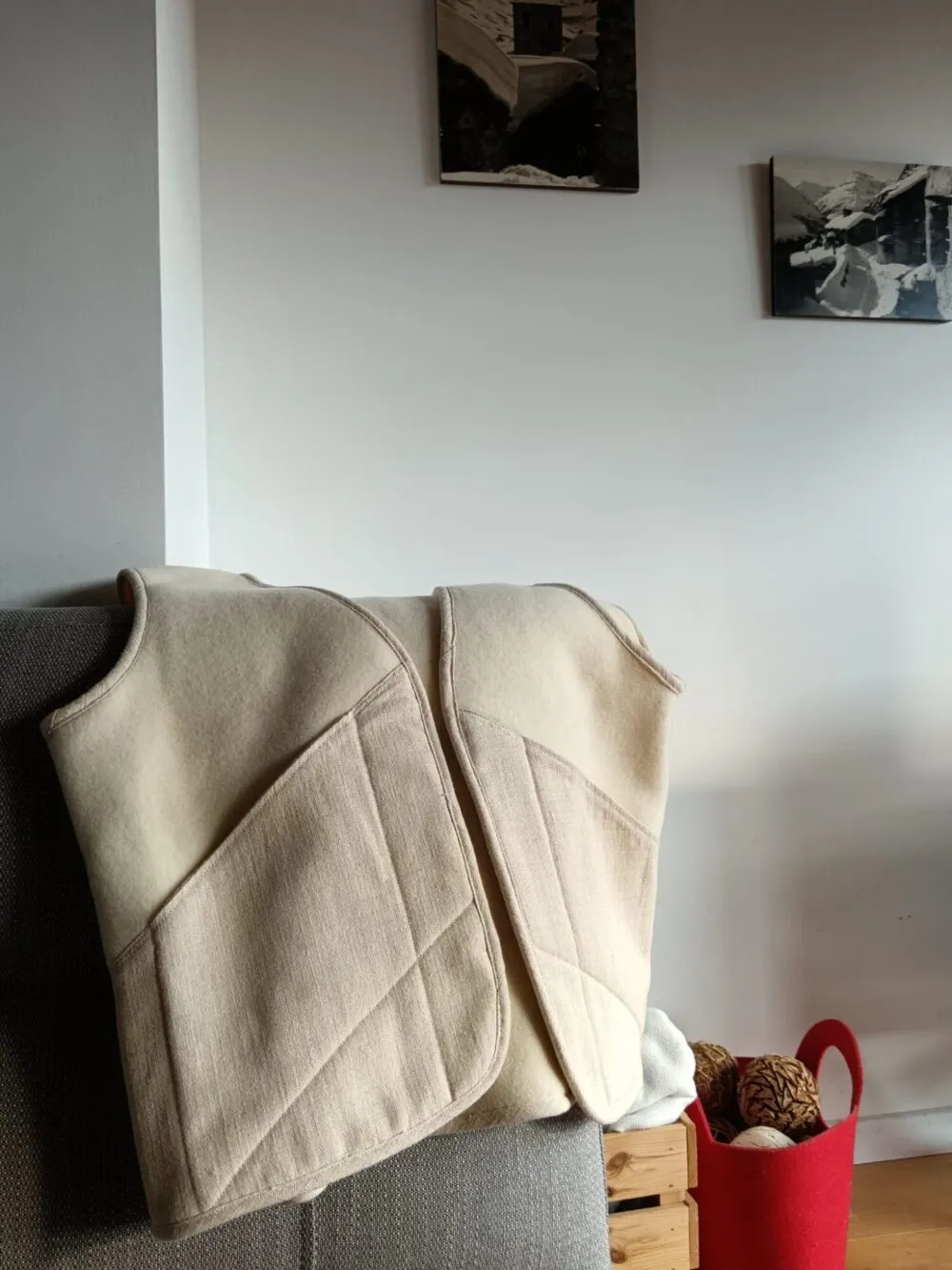 Gilet berger élégant en polaire mérinos d’Arles & ripstop chanvre et laine